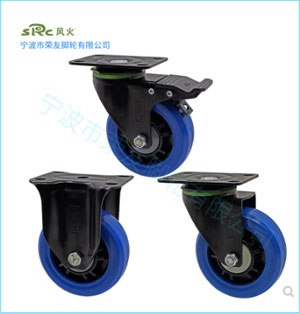 向荣SRC风火脚轮3寸4寸5寸蓝色高 弹力橡胶ER定向万向刹车轮超静音